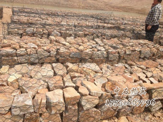格賓網(wǎng)箱填充料塊石粒徑應(yīng)控制在8~25cm的占80%以上,其余20%為級配好的碎石。